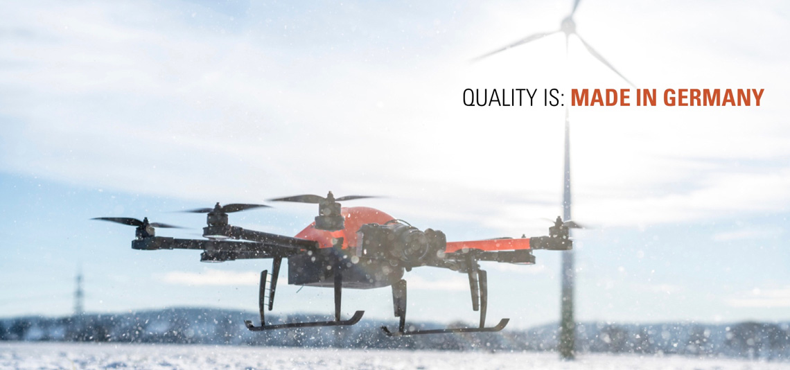 De drones worden volledig zelf ontwikkeld van Duitse kwaliteit. Alle types worden op verzoek voorzien van een luchtwaardigheidsbewijs middels een IDCA.