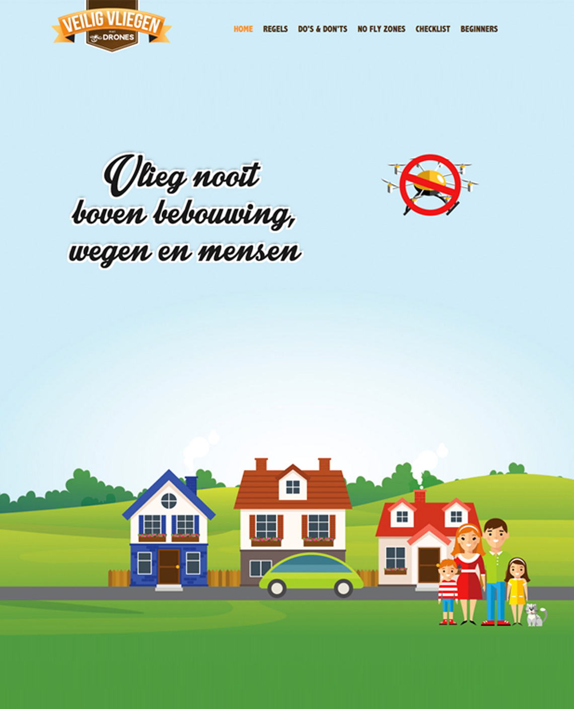 VeiligVliegen is een voorlichtingscampagne over veilig vliegen met drones. Met behulp van een kleurrijke website en folder informeert de campagne beginnende dronevliegers over de regelgeving die gepaard gaat met het vliegen met drones.