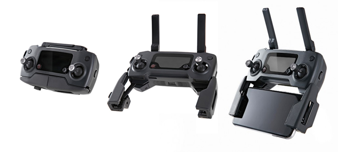 De DJI Mavic Pro Platinum wordt geleverd met een remote controller. Deze remote controller heeft een bereik van maximaal vier kilometer. Aan de onderzijde van de remote controller bevestig je eenvoudig je smartphone waarop je direct mee kijkt met de camera van de drone. Ook zijn er tablet houders beschikbaar waarmee je ook een tablet aan de remote controller kunt bevestigen.