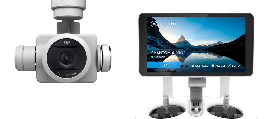 De DJI Phantom 4 Pro+ is voorzien van een hoogwaardige 4K camera die voor stabiliteit is bevestigd in een gimbal. De camera is voorzien van een 1-inch 20-megapixel CMOS sensor. Het is de eerste camera van DJI die is voorzien van een mechanische sluiter. Dit voorkomt vervormingen die kunnen optreden bij het maken van opnames van snel bewegende onderwerpen of bij het vliegen op hoge snelheid. De camera filmt in een UltraHD 4K resolutie en doet dit met maar liefst 60 beelden per seconden. De beelden worden verwerkt met een bitrate van 100Mbps.
