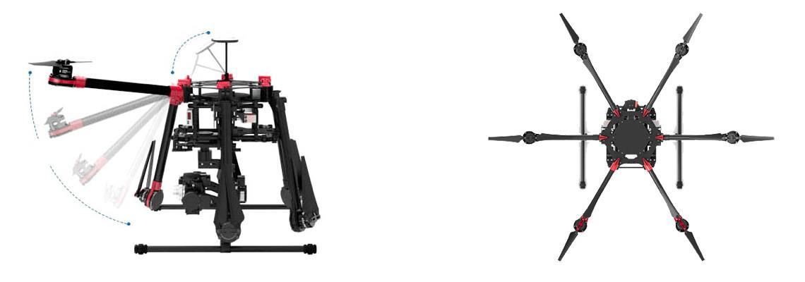 De drone beschikt over een intrekbaar landingsgestel. Een intrekbaar landingsgestel heeft vele voordelen. Door het intrekken van het landingsgestel is de drone een meer gestroomlijnd en vangt hierdoor minder wind. Ook kan de camera 360 graden om zich heen kijken zonder dat het beeld verstoord wordt door het landingsgestel. Tenslotte geeft een intrekbaar landingsgestel natuurlijk de ultieme futuristische look aan je multicopter.