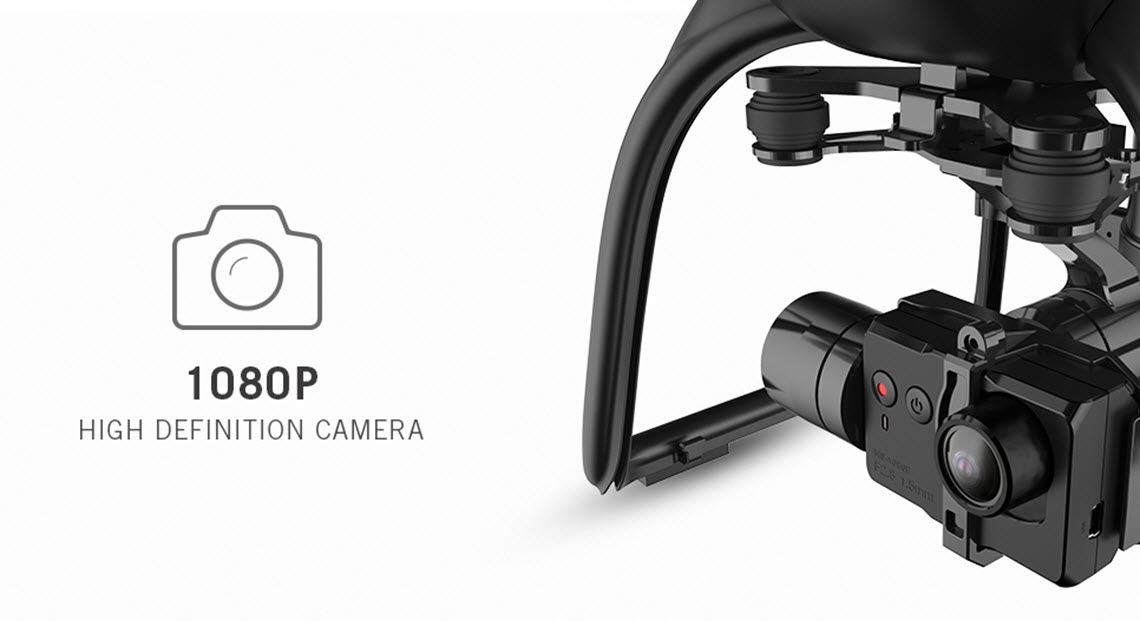 Hubsan X4 Pro H109S is voorzien van een 3-assige gimbal. De gimbal zorgt ervoor de camera altijd in dezelfde positie blijft hangen, ook al beweegt de drone door verplaatsing of de wind. Dankzij de gimbal kun je uiterst stabiele beelden maken en heb je alles in huis voor professionele luchtopnames.
