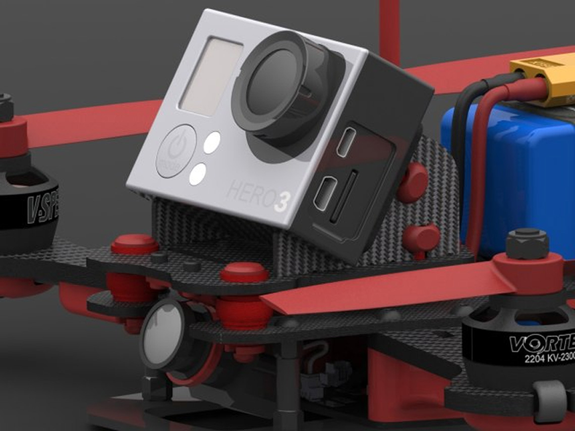 De Vortex 250 Pro wordt standaard geleverd inclusief GoPro-mount, zodat je een GoPro op de Vortex 250 Pro kunt monteren en de vlucht in HD opnemen.