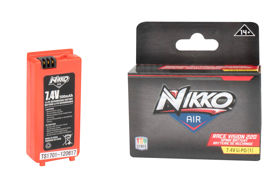 De Nikko Air Elite Racers set wordt geleverd met een 500mAh 7,4V LiPo batterij. Deze batterij zorgt voor een vliegtijd van (..) minuten. De accu is makkelijk verwisselbaar waardoor je snel weer in de lucht bent.