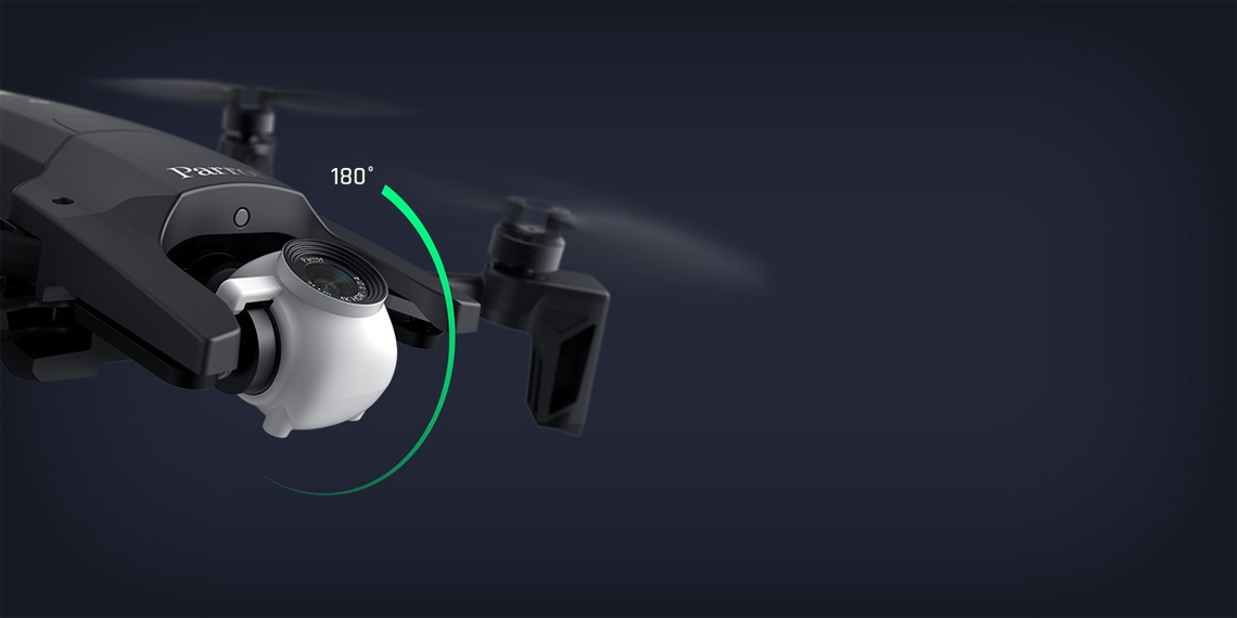 De camera is in staat om 180 graden van boven naar beneden te bewegen. Hierdoor is het mogelijk om naast recht naar beneden, ook recht naar boven te filmen en fotograferen met de Parrot ANAFI drone.