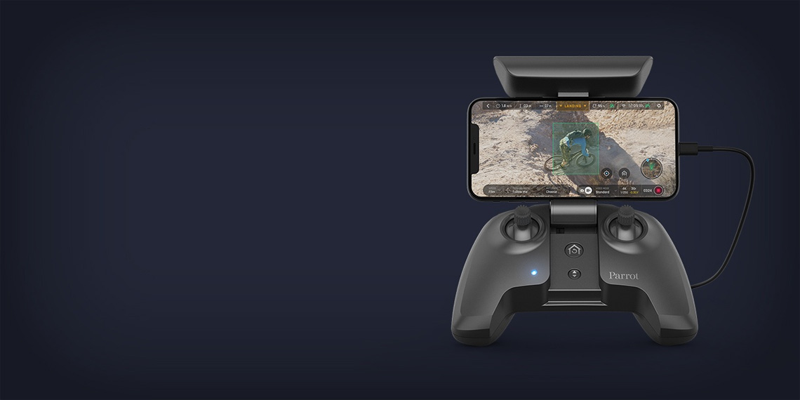 De Parrot ANAFI wordt standaard geleverd inclusief Parrot Skycontroller 3. Het bereik van deze remote controller is zo'n 4.000 meter. In de smartphone houder bevestig je eenvoudig je smartphone waarna je live mee kunt kijken met de camera van de drone. De remote controller is voorzien van een oplaadbare LiPo accu.