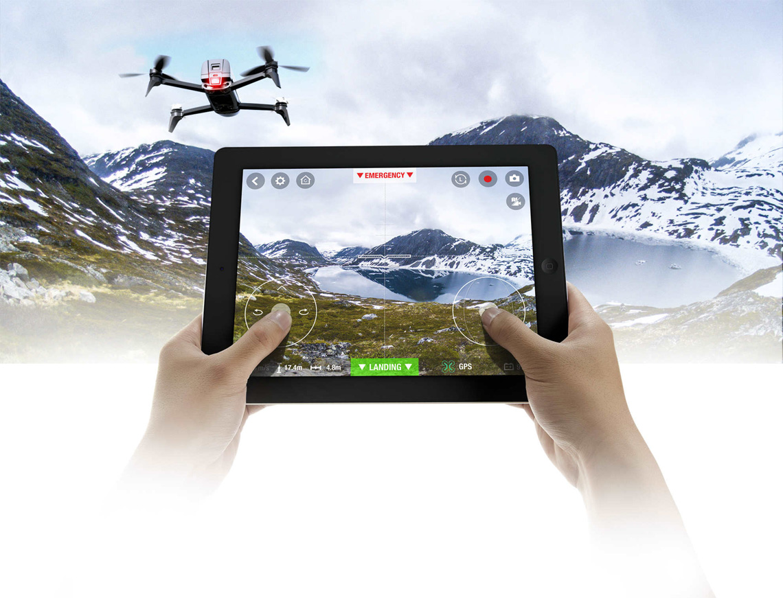 De Parrot Bebop 2 drone is te bedienen via de gratis app FreeFlight 3. De app is beschikbaar voor alle Apple iOS apparaten, zoals iPhones en iPads. Ook beschikt Parrot over een app in de Google Play store voor Android apparaten zoals Android smartphones en Android tablets.