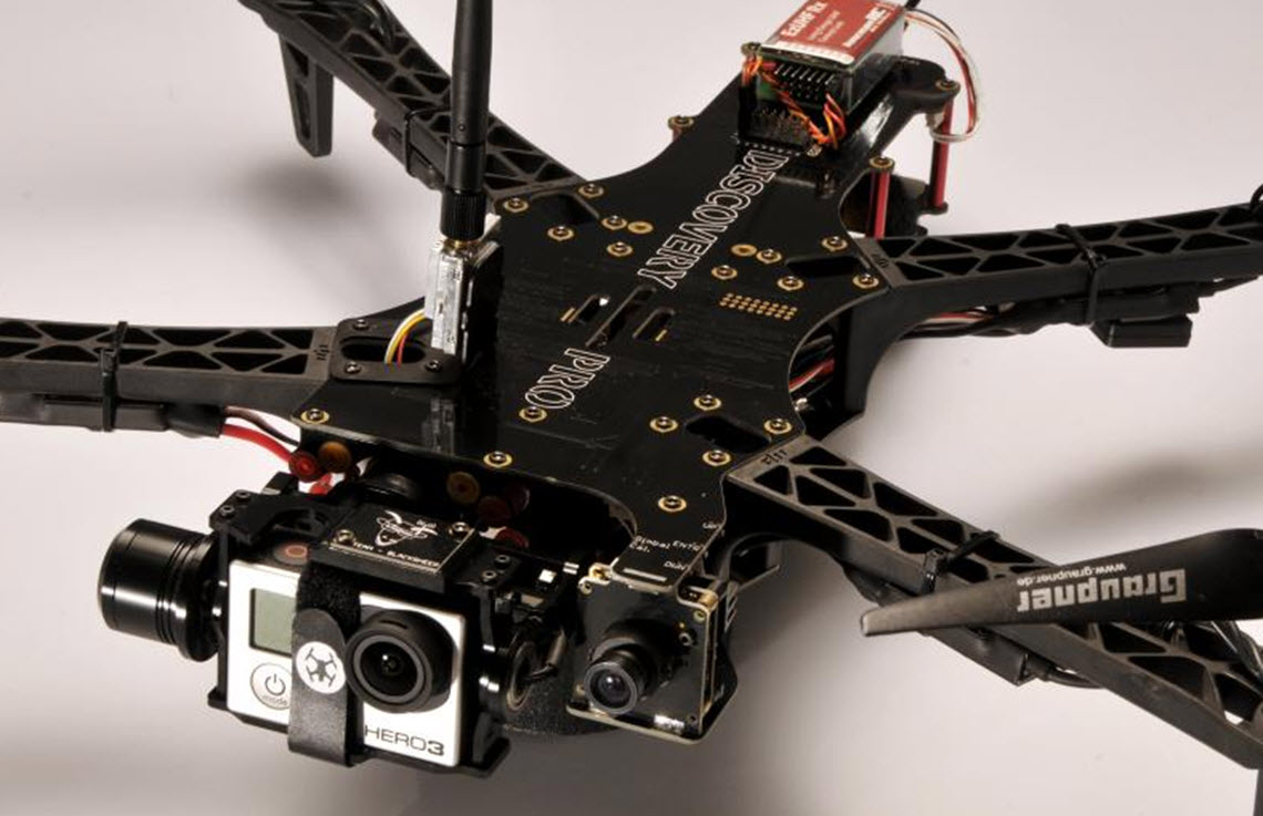 TBS Discovery Pro wordt geleverd zonder camera. De quadcopter is wel geschikt voor montage van een GoPro 3/4 camera.