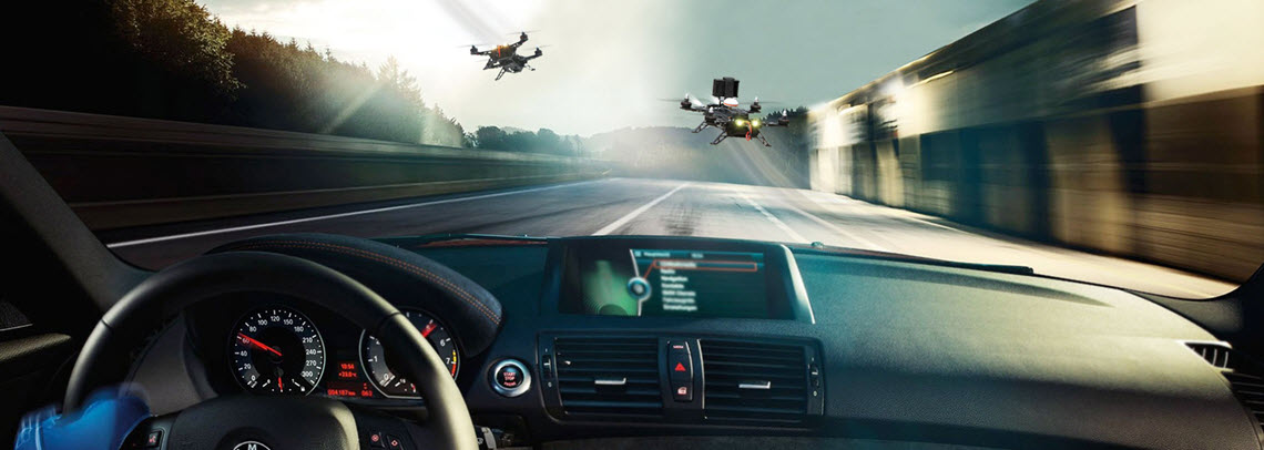 De drone is uitgerust met een FPV camera. Met de videobril kun je beelden van de camera real-time waarnemen.