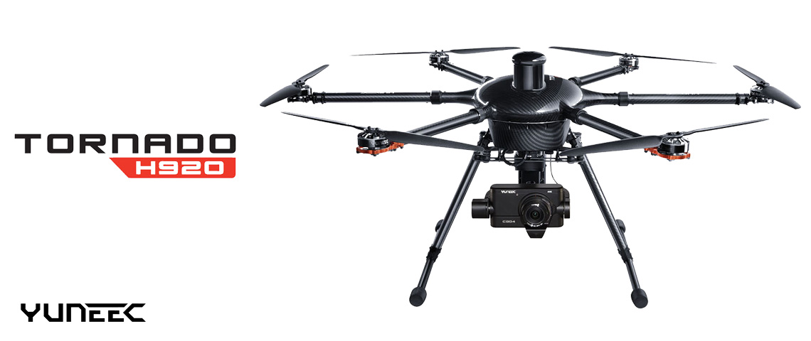 Yuneec Tornado H920 is een compleet hexacopter-systeem voor de professionele luchtfotograaf. De Tornado H920 wordt geleverd inclusief afstandsbediening met display voor live-video van de videocamera.