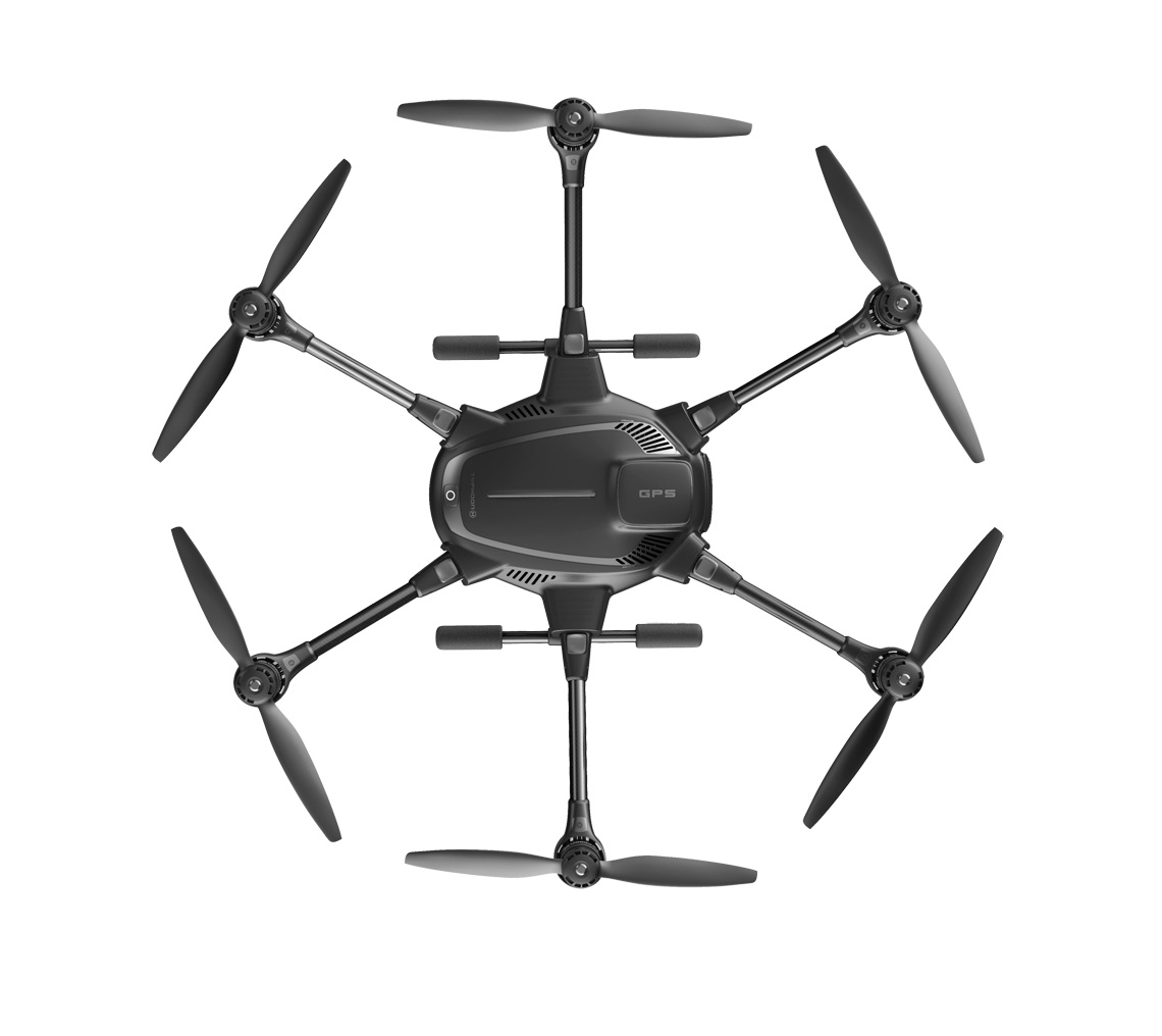 De drone is uitgerust met 6 armen, elk voorzien van een krachtige motor. Het uiteinde van iedere motor is voorzien van een 2-blade design propeller. De propellers zijn ontworpen voor een maximaal resultaat van vliegduur ten opzichte van het accuverbruik van de motoren.
