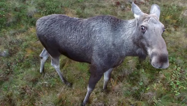 Aangezien elanden best agressief kunnen zijn, heeft filmmaker Kolbjørn Hoseth Larssen veel geluk met dit vriendelijke exemplaar. Zijn DJI Phantom 3 Professional blijft dus helemaal heel en Larssen houdt leuk beeldmateriaal over aan zijn ontmoeting!
